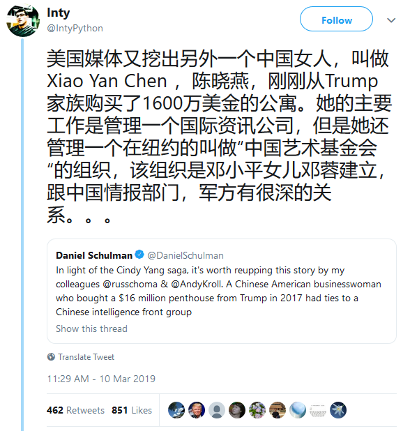 • 中共行贿川普,军方背景女富商陈晓燕4.7亿买下川普大楼内一个公寓单位