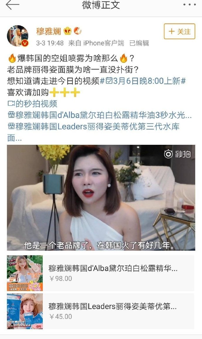 大家还记得因为萨德事件,穿着红卫兵衣服反挂过国旗拍视频大骂韩国大骂乐天让韩国人叫爸爸的穆雅斓吗? 她开始代购韩国货了