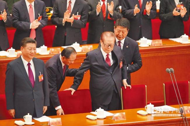 江最近一次露面是在2017年10月召开的中共十九大的开幕式上。央视画面显示,江是被人”架”进会场的。会议期间,江瘫软在椅子上,被他身后的两名服务人员连拉带拽地揪起来。