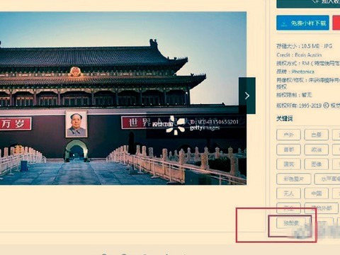 有网民发现视觉中国网站在一张天安门照片上标记了”独裁者”,照片上有毛泽东画像。(网络图片)