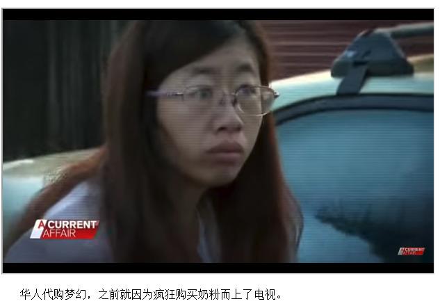 在澳洲九号台旗下一档节目《A Current Affair》曾发布过一个专题片《疯狂的澳洲奶粉》(Baby formula frenzy),这档节目跟拍了一个华人家庭一整天,主角正是这名女士。