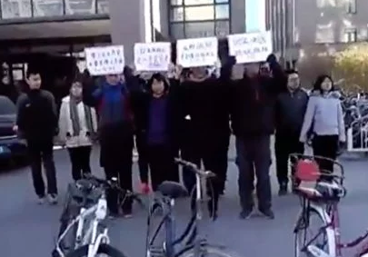邱占萱等几名大学生于去年12月在北京大学门口抗议改组马克思主义学会,遭到校方和警方打压。(视频截图)
