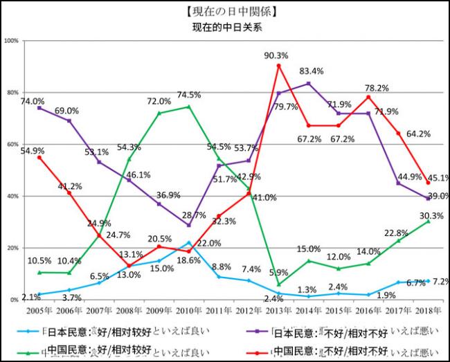 10月11日,由中国外文局和日本言论NPO共同发起的2018年“中日关系舆论调查”结果在东京发布。中国民众对日本印象“好”或“相对较好”的比例达到42.2%,自2005年开始调查以来首次超过四成,是13年以来的最高水平。