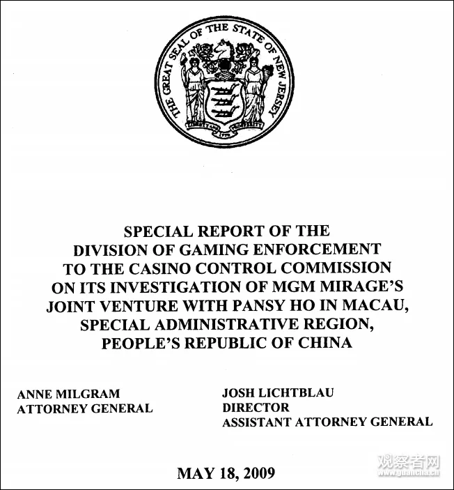 其实,早在2009(澳门美高梅)成立2年后,新泽西检方就已经发表一份“特别报告”,指控何鸿燊“涉黑”。