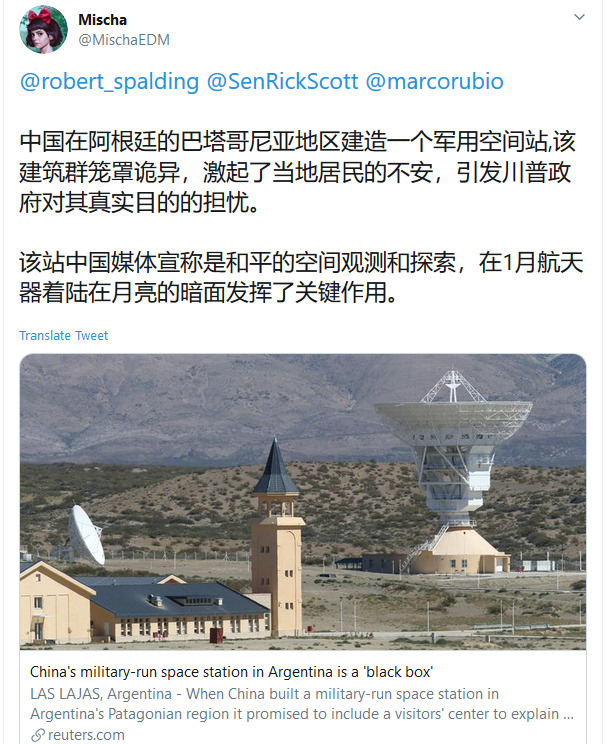 这200公顷的中国空间站根本阿根廷政府没有实际监管。根据路透社所获得的、经国际法专家审查的几百页阿根廷政府文件,也证实那里根本没人管!