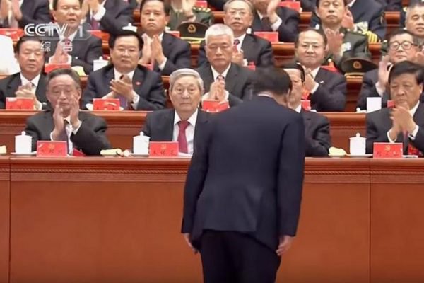 中共央视视频显示,去年10月18日中共十九大开幕日,习近平做完报告后,向在场人鞠躬时,唯有朱镕基未鼓掌,只是在大会开始,习近平进场做报告的时候,朱镕基有小小地鼓掌。但朱镕基有认真看报告。