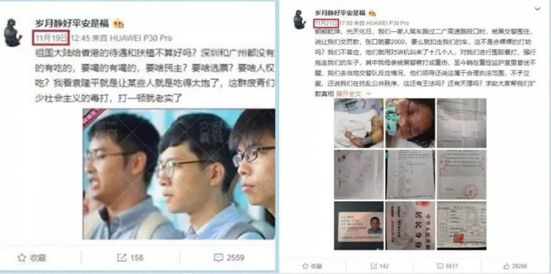 • “岁月静好平安是福”支持中共警察向港人施暴,不料想第二天自己一家人被当地黑警察暴力殴打!