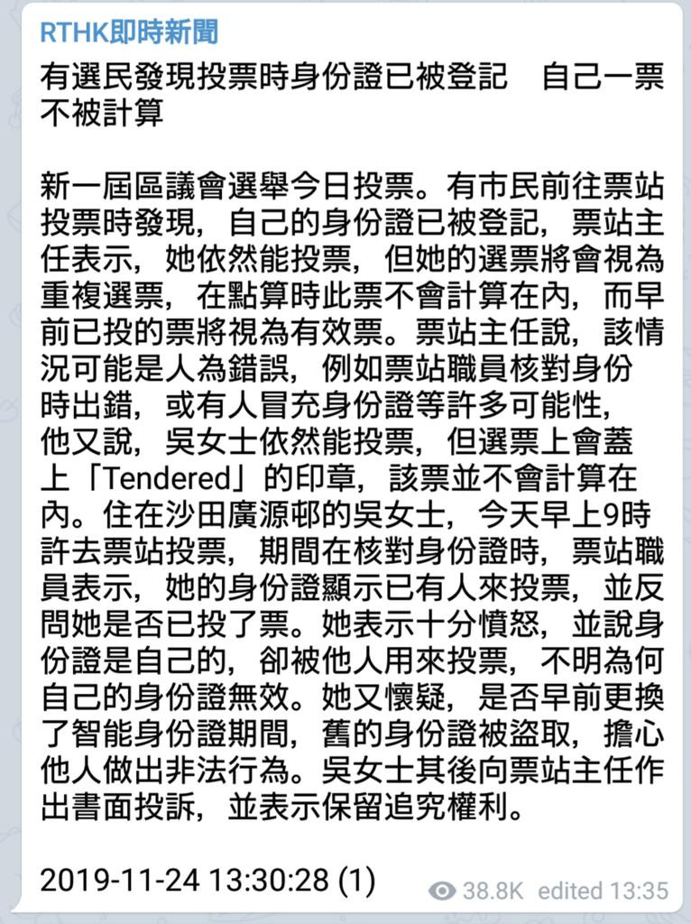 《苹果日报》的评论指出,周日区议会选举投票日。亲共政客极力渲染香港市面的动盪以影响市民投票意欲,恨不得取消选举。同时,诸如投票无用论、投白票论、食人血馒头论、不投传统泛民论等似是而非的言论也在网络上广传,难以分辨来自个别激进抗争者,还是亲共阵营故意搅局,只可以说,11.24区选正面对左右夹击,民主派的选情远不是所预想的那么乐观,逆权运动的参与者、支持者切莫掉以轻心,务必向身边的亲友说清说透投票的必要,发挥选票这枚核弹的威力。