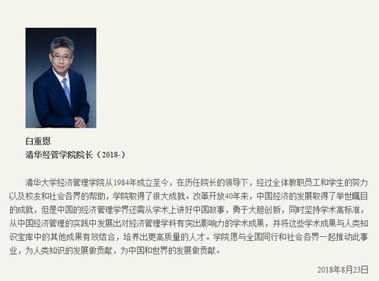 今年白重恩接棒钱颖一,担任清华经管学院院长。