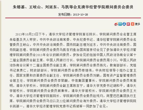 当时王岐山的身份是“中共中央政治局常委、中央纪委书记、清华经管学院顾问委员会名誉委员”。
