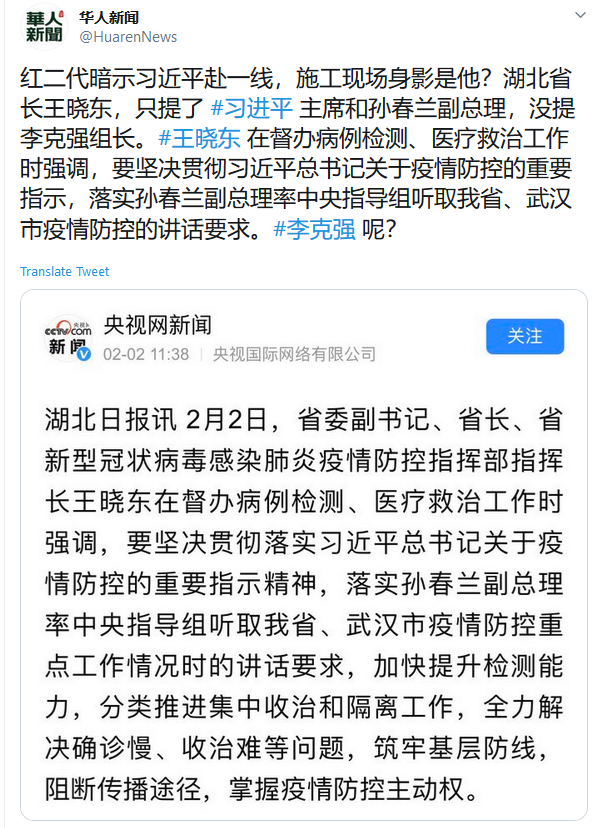 关于武汉肺炎,习近平要控制舆论维护稳定; 李克强要防止疫情扩散蔓延 – 两人权斗超乎想象