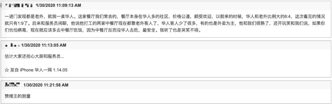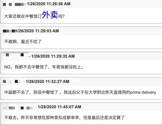 华人网友们纷纷表示,最近的确不太敢去中餐厅,连外卖都太不敢点#最近一两个月都不会去华人超市、饭店、发廊