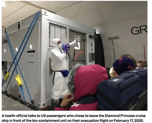 (图片来源于网络,版权属于原作者)根据国务院发布的最新消息,今天,美国时间2月17日,美国政府包机从日本钻石公主号游轮上撤走了300人(包括美国公民及他们的非美国直系亲属),其中有14人新冠病毒检测呈阳性!国务院发言人表示,虽然检测结果呈阳性,但由于目前这14人并无发病症状,“这14人被允许与其他撤离人员一起乘上了飞机,但被安置在一个独立的隔离箱中(如下图)”。