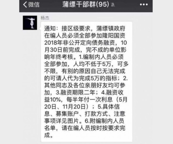 通知最少交5万块给党共克时艰 国家 新闻 21 10 月, 2018 荒唐世界 云南省保山隆阳区蒲缥镇“蒲缥干部群(95人)”的一条聊天记录显示:该镇政府强制要求在编人员“共克时艰”,必须全部参加隆阳国资2018年非公开定向债务融资,指标人均不低于5万,10月30日前无法完成的单位影响年终考核的发放。 本文内容除特别注明外均取自各新闻媒体(本站底部列表)和youtuber twitter(x),chatgpt, gemini, 并不代表本站立场! 评论不允许人身攻击。 Posted in 荒唐世界Related Posts 胡春华与“习近平集团清算组”之谜 网络疯传李桥铭抓捕了习近平,准备公开习近平杀死李克强罪状 习家王朝,还是内战?二月底将见分晓 习近平兵败如山倒,全军拥立胡锦涛复出; 军队和南方纪委同志软禁齐桥桥和家人 惊传齐桥桥深圳被“囚” 习家内部出现变数? 实锤 军队真和习近平干起来了 新年预测:中国将爆发战争,战争将从中国东南部爆发 解放军南部战区告全国人民书 张带弓被杀在赤马红羊劫之年,白头翁习近平混不吝,中国将进入乱世! 习近平抓张又侠破釜沉舟,大不了一死! 张又侠被抓 一张合照惊悚至极;中国军队已经一盘散沙,南部战区呼吁起义! 朱镕基在上海被拔管去世 灵柩回京 中南海秘不发丧
