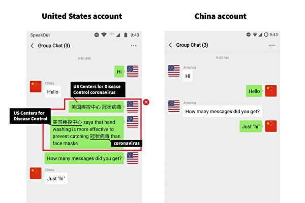 在华语区,有关香港、澳门和台湾爆发武汉肺炎的新闻,也遭到审查。 研究发现,约有99个关键字组合被屏蔽。例如“医护人员+罢工+局部封关”、“林郑月娥+傀儡”、“口罩+台湾+出口+国家”、“澳门+政府+戴口罩”。