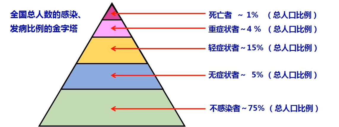 这个图表标识佛系抗疫的结果图。一个群体75%是不会感染武汉肺炎的,无症状者是5%,轻症患者15%。而死亡率只有1-2%。因为中国防疫采用中药,死亡率也是介于1-2%之间。钻石公主号邮轮的死亡率。