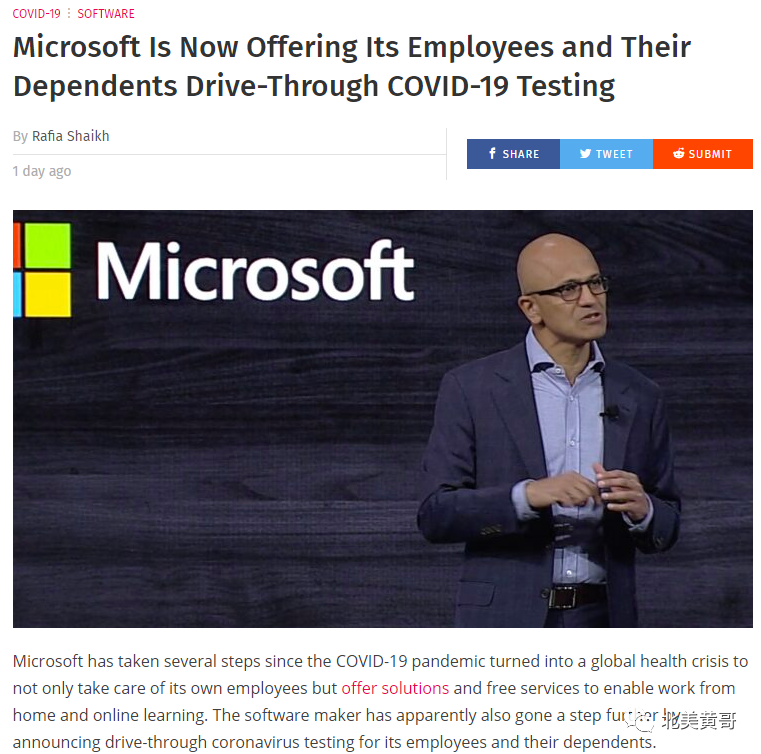 图:微软为员工提供COVID-19检测点