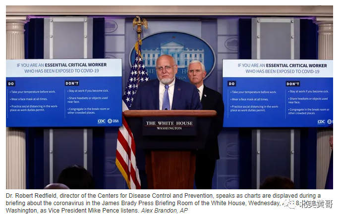 CDC复工指导方针。总统在美国没有爆发疫情或者疫情不严重的地区复工和重启经济。疾病控制与预防中心(CDC)周三公布了指导方针,有意加速必要产业(包括医疗保健和食品供应类)员工返回工作岗位。CDC主任罗伯特·雷德菲尔德(Robert Redfield)博士说,只要员工在离确诊病例或疑似病例6英尺内且没有症状的情况下,可以继续工作。