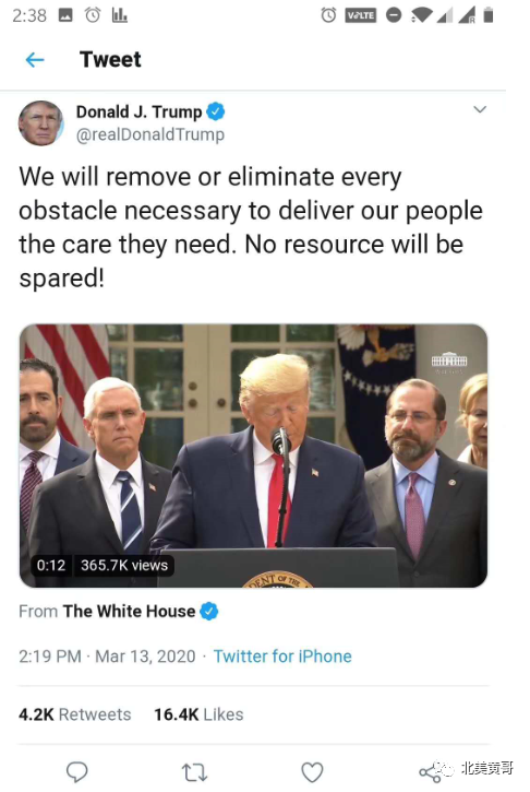 3月13日,总统Trump 宣布美国进入国家紧急状态:
