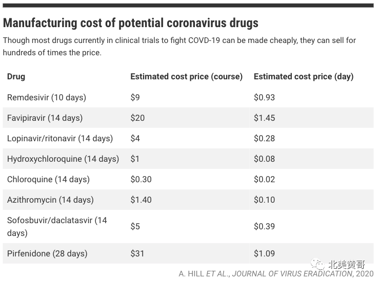 图:8个新冠治疗方案的成本