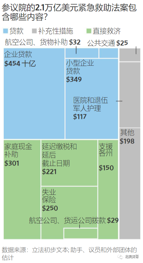 图:美国2.2万亿的救助方案(单位:十亿美元)