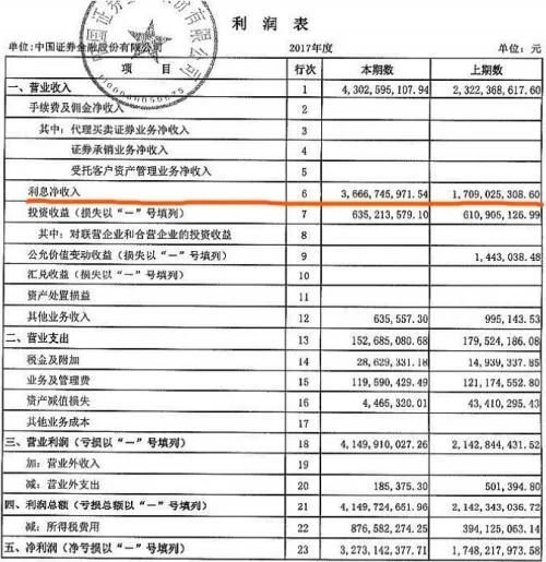 2017年证金公司利润表,可看出2016年净利润17.48亿元,2017年净利润32.73亿元。图片来源:证金公司年报