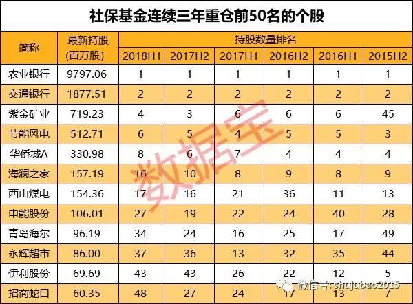 社保基金连续3年重仓股里,有银行和矿业企业等国有企业。数据来源:数据宝
