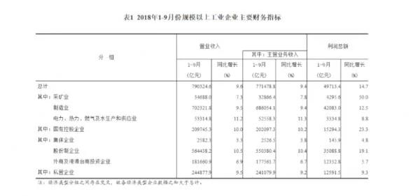 采矿业2018年1-9月,由于供给侧改革带来的利润增幅高达50%,数据来源:国家统计局报告