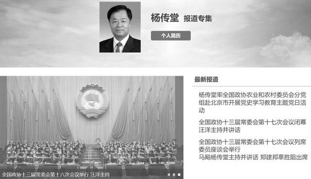 《燕铭时评》查证发现,自6月26日之后,截至本文7月11日发稿,全国政协官网再无杨传堂公开活动消息。6月29日全国政协官网报道,全国政协主席会议成员28日下午到全国政协礼堂集体参观中共八大历史陈列展览,中共中央政治局常委、全国政协主席汪洋与15名全国政协副主席出席参观活动;名单中未见杨传堂。(见置顶图)