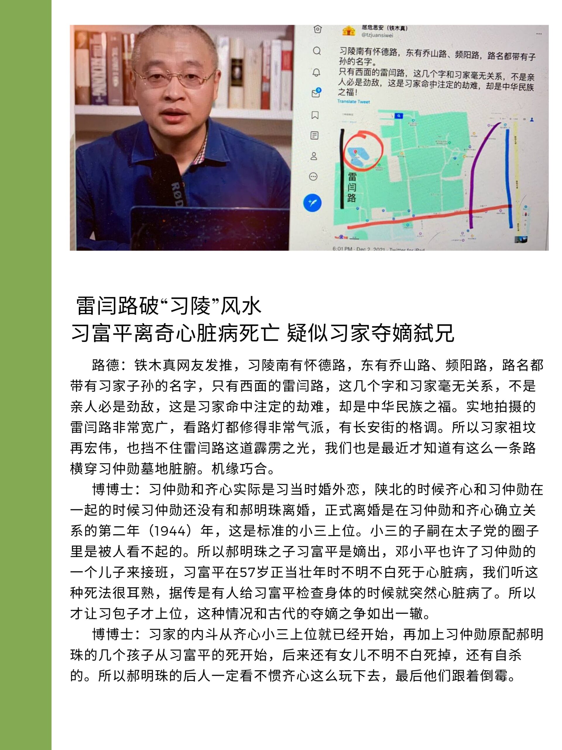 • 习近平父亲习仲勋陵墓命名为习陵, 旁边道路名字含有其子孙名字习明德