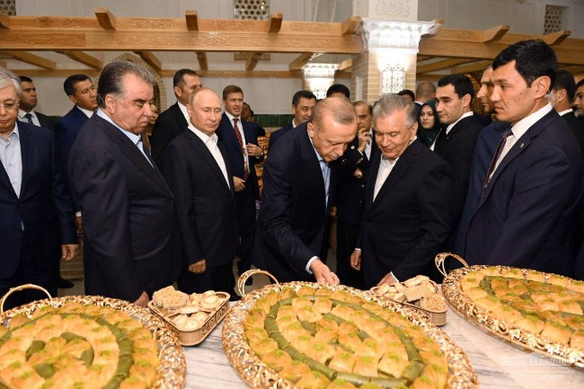 中国国家主席习近平自14日启程中亚行,并顺道参加于乌兹别克举行的“上海合作组织”(SCO)峰会,15日所有参加峰会的领袖都齐聚乌兹别克相见欢,并免不了进行团体大合照,以及会后的轻鬆聚会。但从现场的画面可见,习近平虽然参加会议,但在多张团体照中,却完全不见他的身影。《中东之眼》土耳其分局长索伊卢(Ragıp Soylu)这次参与该峰会的采访行程,但从他释出的照片可见,两张拍摄多国领袖齐聚一堂,大家一起喝茶吃甜点水果,有说有笑。其中以土耳其总统艾尔多安“做庄”,另外俄罗斯总统普京、伊朗总统莱希、白俄罗斯总统卢卡申科、哈萨克总统托卡耶夫、乌兹别克总统米尔则亚耶夫,以及蒙古总统呼日勒苏赫都在座,但绕了一圈,就是不见习近平的踪影。