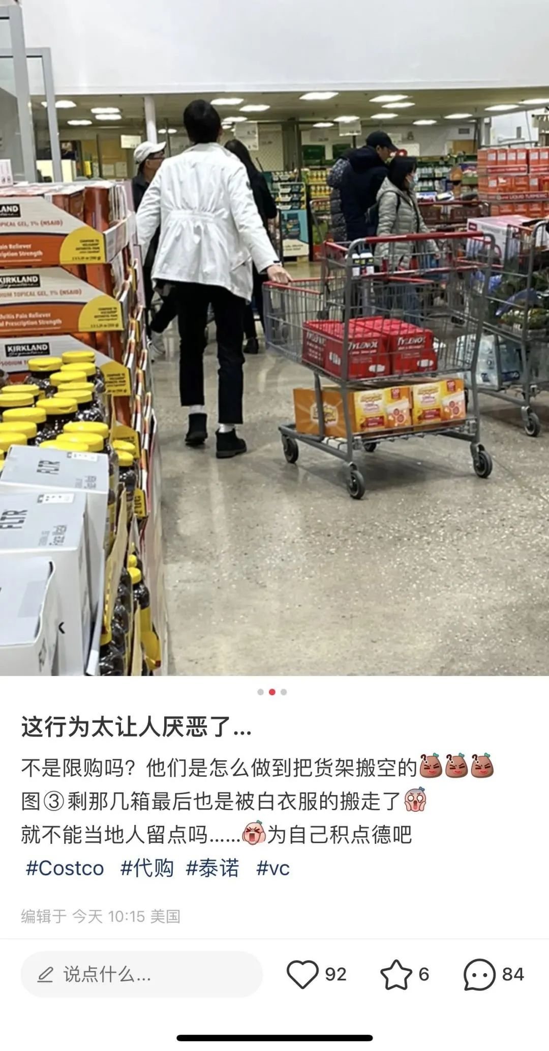 “华人出离愤怒!代购把Costco的泰诺搬空。