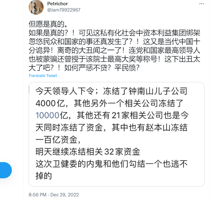 • 钟南山儿子公司及其相关公司一万四千亿资金被冻结