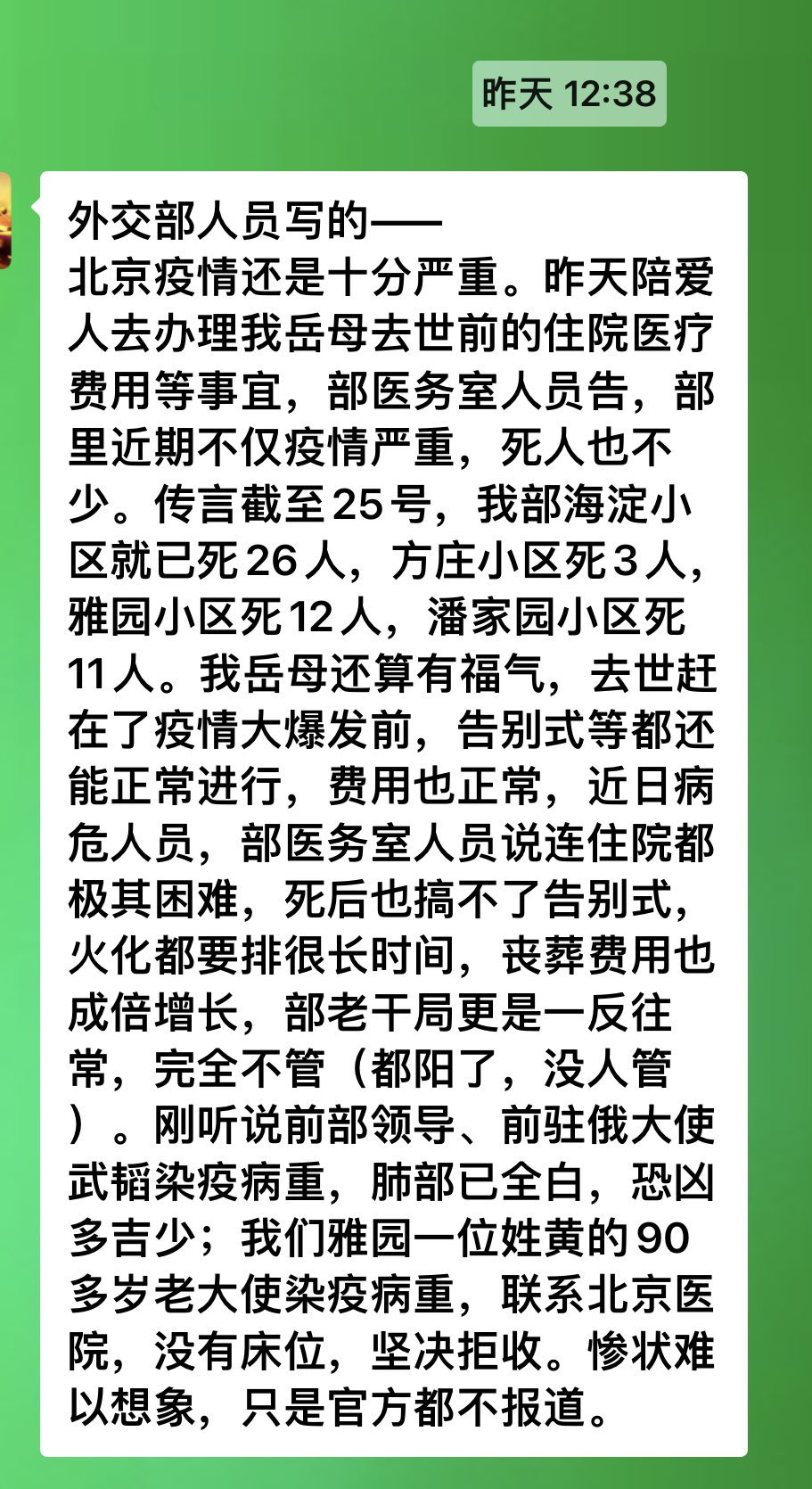 截至2022年12月25日,中共外交系统共有52人死亡。而堪称头号战狼的中共外交部发言人赵立坚,也从12月2日后,就在公众视野中消失。赵妻曾侧面透露赵立坚发高烧一週多,但后来这篇文章已经删除。