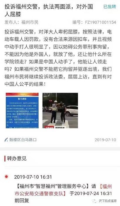 在福州打交警的就是外国留学生。在中国的地盘上敢动手打中国的警察,多么嚣张。
