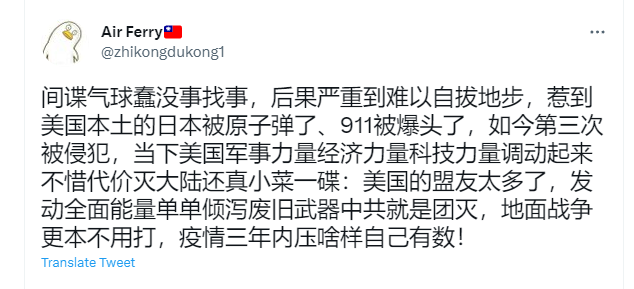 自从美国新议长凯文·麦卡锡宣布近期访问台湾之时,中共就挖空心思的要搞事情,气球事件肯定是中共组合拳中的一部分。佩洛西访台前中共叫嚣击落其专机,然当飞机平稳落地到台湾后,中共一如既往的保持的最大限度的克制。
