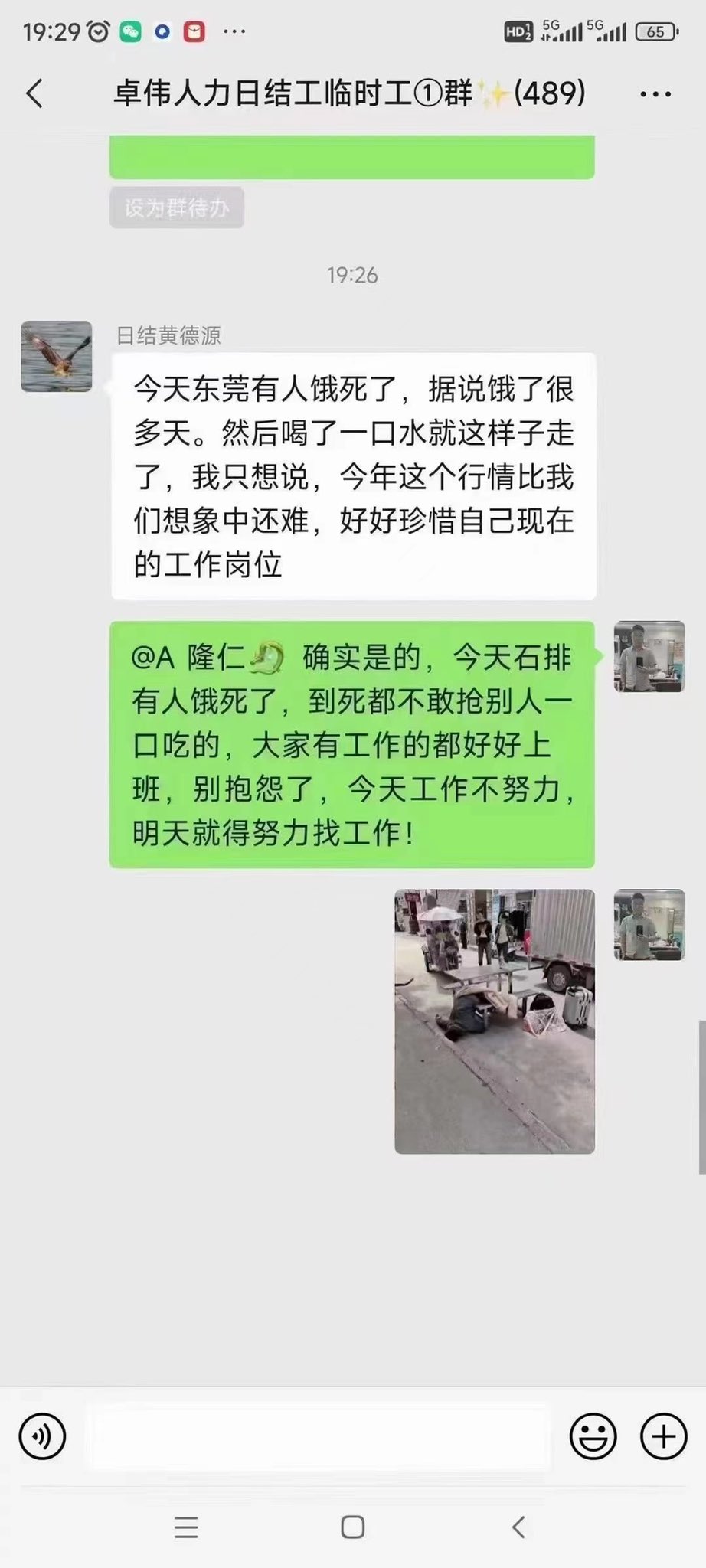 中共治下制造业塌缩,外出打工人一职难求,有人被迫返乡,有人继续滞留城市希望觅得一个工作机会。近日,传广东东莞一名打工小伙疑找不到工作惨死街头,相关视频流出。有网友猜测,男子也可能是饥寒交迫引发疾病猝死。 3月9日,还有网传图片显示,东莞桥头镇疑似还有人饿晕。