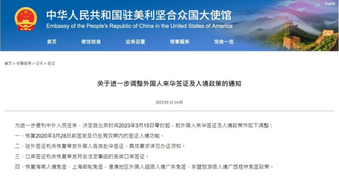 根据可靠消息指出,中国驻外签证机关将从3月15日起,恢复2020年3月28日前签发且仍在有效期内的签证入境功能,这也意味着原来因为疫情停用,持美国护照者所持有的十年多次入境签证,将可从15日起重新使用。