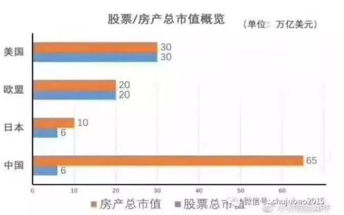 大陆财经人士齐俊杰表示,潘石屹所提到的网红数字图表,不光有房地产总市值,还有股票总市值跟全球的对比,美国30万亿美元房产,30万亿美元股票。欧盟是20万亿美元房地产,20万亿美元股票,日本10万亿美元房地产,6万亿美元股票市值,而咱们65万亿美元的房地产,6万亿美元的股票市值。