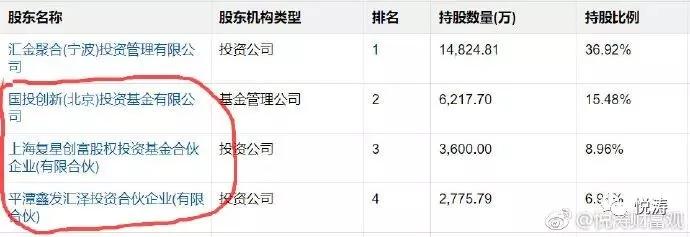 公司第一大股东汇金聚合(宁波)投资管理有限公司累计1.47亿股,占总股本36.5%,占其持股的98.88%;