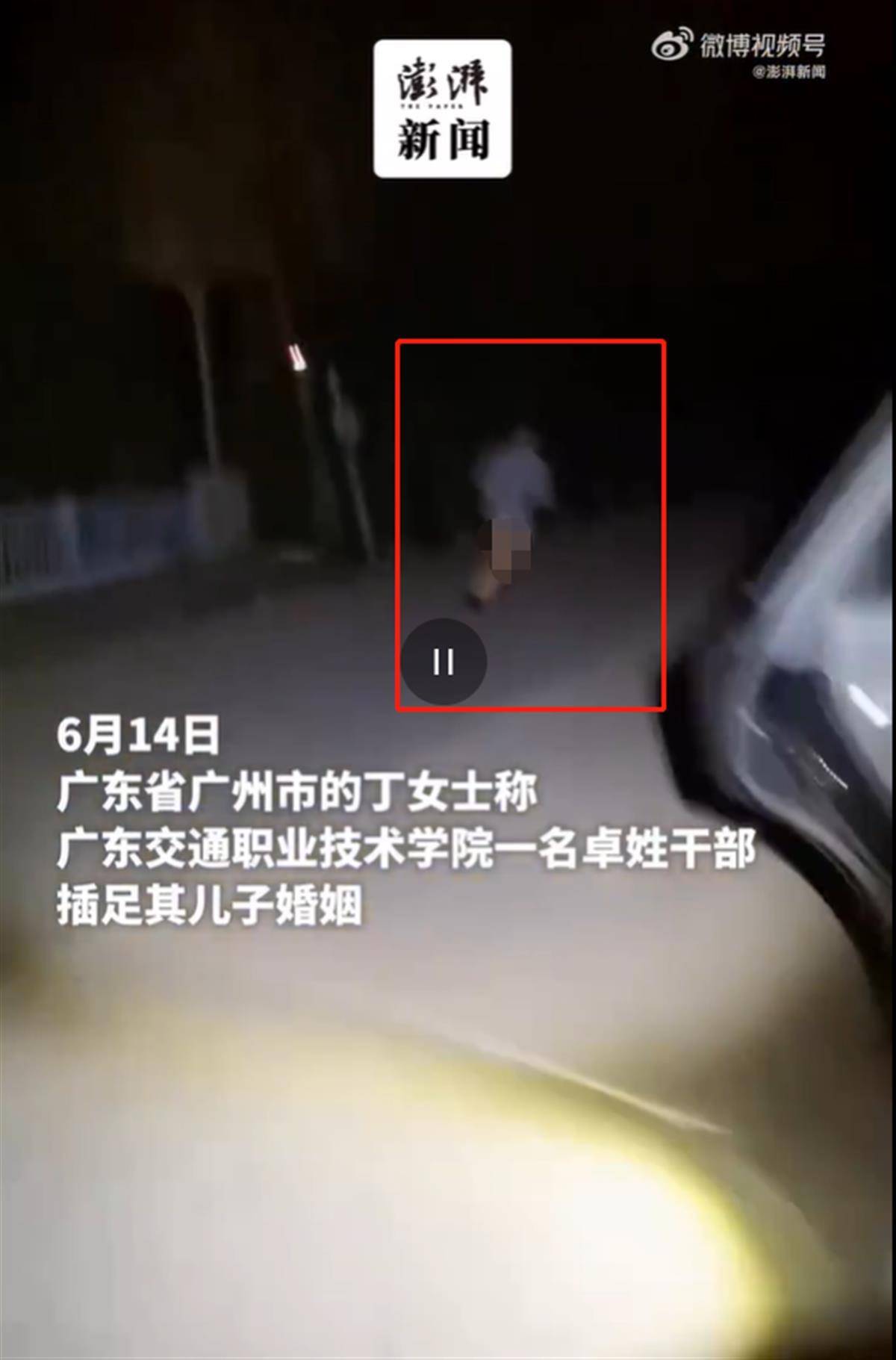 6月14日,广州市的丁女士称,广东交通职业技术学院一名卓姓干部,插足其儿子婚姻,该男子与其儿媳疑似在车内发生两性关系。