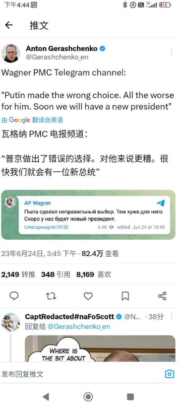 俄国民间网站也声称,在发生瓦格纳兵变事件后,普京已大权旁落,俄国的权力转移正在悄悄进行中。