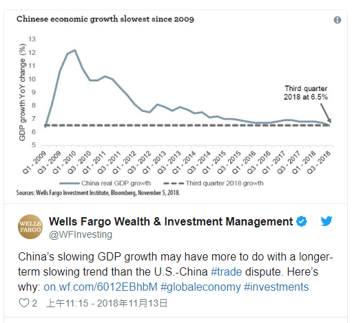 最近富国银行制作的一张中国经济增长趋势的图表,令全球投资人及央行心惊肉跳,担心程度甚且超过对中美贸易冲突的担忧。