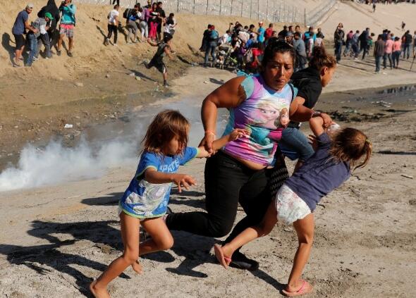 美方向移民发射催泪弹(图源:路透社)