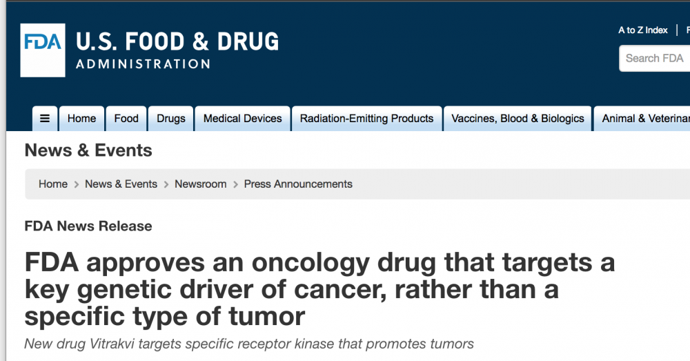 FDA局长Scott Gottlieb表示:“对于larotrectinib的加速批准上市,标志着治疗癌症的疗法从基于人体起源组织向基于肿瘤遗传特征转变的重要一步,我们现在有能力让合适的患者在正确的时间获得匹配药物的治疗。”