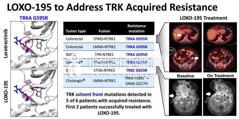另值得一提的是,为了应对耐药问题,Loxo已经开发出第二代TRK融合基因突变抑制剂LOXO-195,用于治疗那些对larotrectinib产生耐药性的患者,目前,LOXO-195也已获得了颇为满意的初步临床数据,该数据此前已发表于美国癌症研究学会(AACR)旗下的《Cancer Discovery》杂志上,通过对Larotrectinib耐药的前2名患者治疗显示,经LOXO-195治疗获得了缓解。