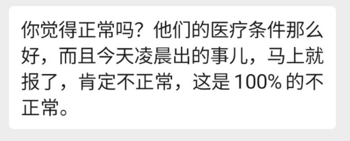 2、按以往惯例,应该公布在哪个医院抢救无效死亡,这里没有公布医院,证明不是在医院去世的,也很可疑。