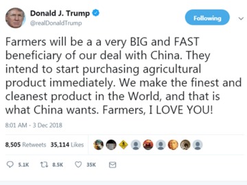 • 川普今天发推:伟大的美国农民将会很快收获很多好处