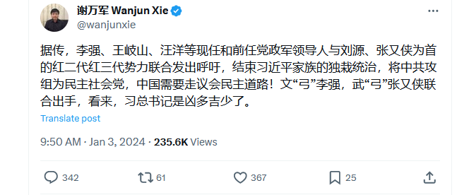 对此,前中纪委监察部官员、中国问题专家王友群1月5日在大纪元撰文(相关链接)认为,由刘源牵头,这么多红二代联署,逼习下台,可能性不大。