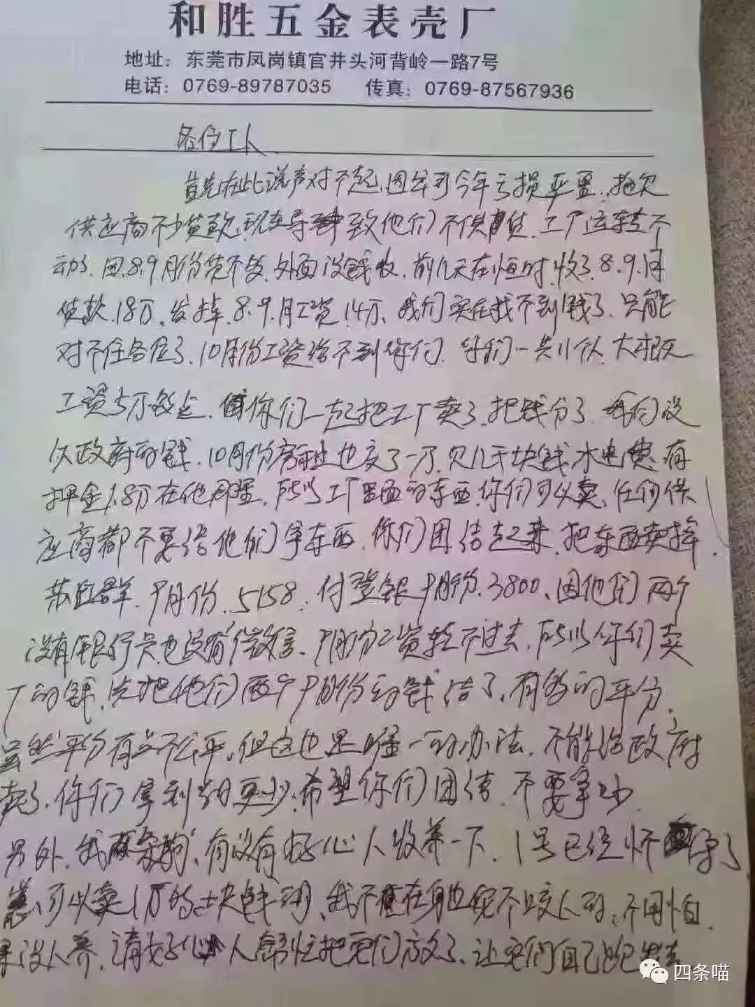 近日,东莞一位工厂老板在工厂停止运转,事业彻底失败后写给员工的一封信在制造业的朋友圈疯传开了。在社保费改税马上实施,在离新年仅仅只有两个月的时候,小厂倒闭大厂裁员,将是我们最不愿面对却又时时要面对的事情。